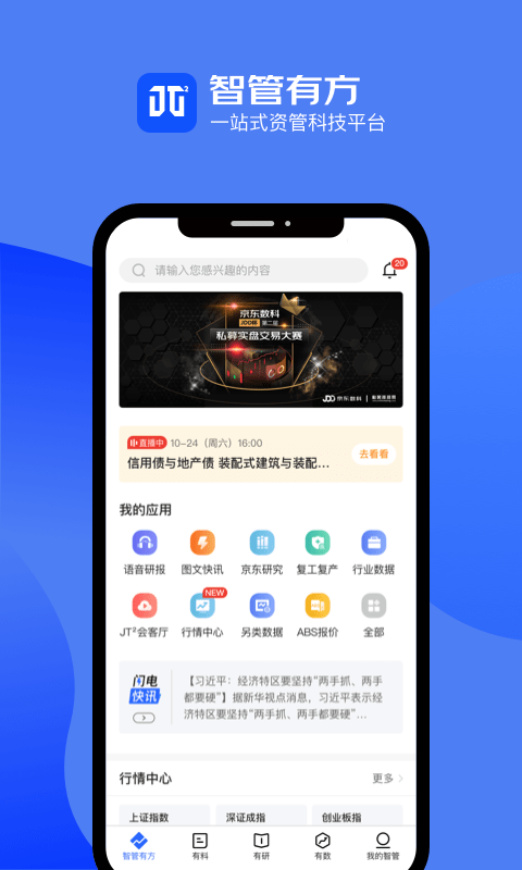 JT2智管有方app是京东推出的一款资产管理软件。JT2智管有方app提供数据分析、智能研究、销售交易、风控管理、视频栏目、远程会议等众多功能。