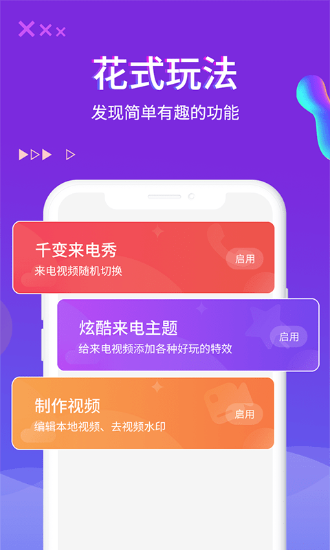 炫酷多样的来电视频和铃声秀,告别单调乏味的系统来电提示音。热门、小姐姐、炫酷、电音、萌宠、音乐、明星、影视、小哥哥、搞笑、情侣、动漫、游戏,音乐,风景等,总有一款满足独特的你。百万来电视频秀、高清图片、魔幻手机桌面主题等精彩内容实时更新。接电话时候,可以呈现与他人不同的来电界面跟来电铃声,给你带来与众不同的来电享受。