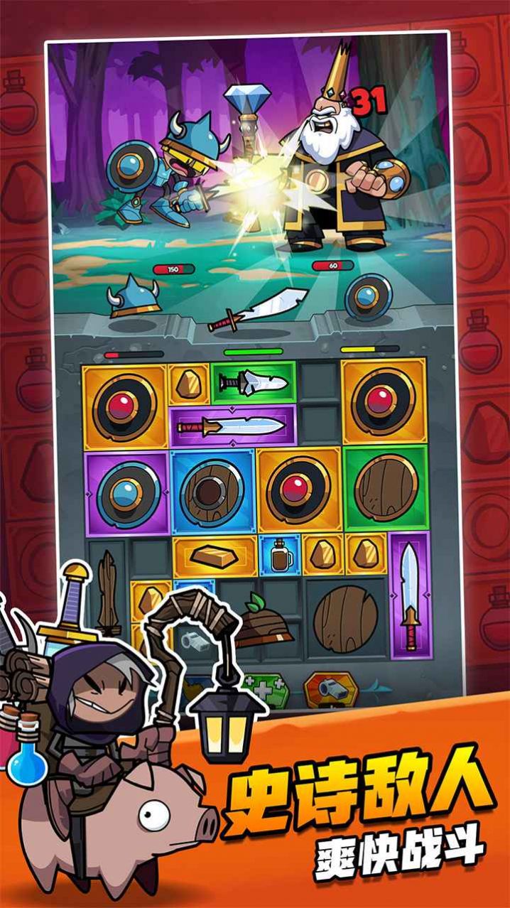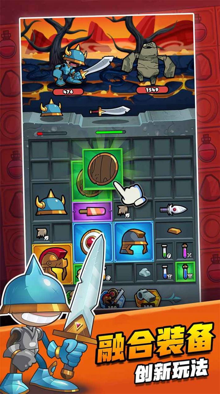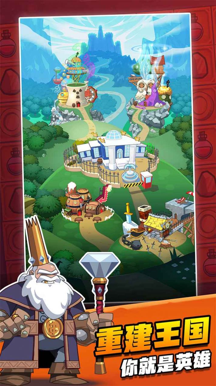 平静的村庄被邪恶国王摧毁,你被村民推举为英雄,踏上拯救家乡的征途!然而一道恶毒的诅咒,会让王国中的所有武器和护甲会很快破碎!所以你必须争分夺秒,在收到装备的同时迅速合成高级装备!你还要小心邪恶的小偷,以免装备落入他人之手。