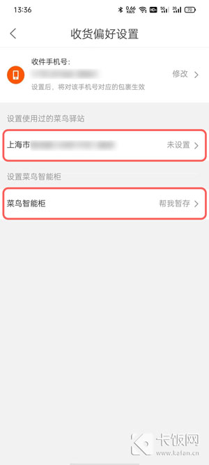 4、选择【菜鸟驿站】一项,进入设置菜鸟驿站存放选项;