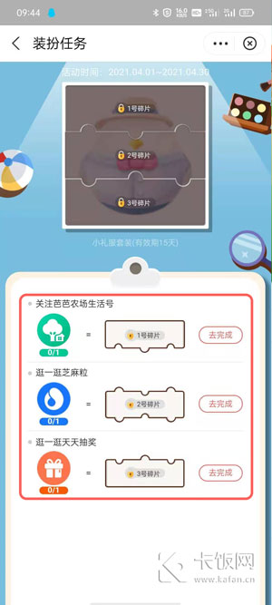 8、随后完成三个指定的任务,领取并兑换三个碎片,即可成功获得该服装;