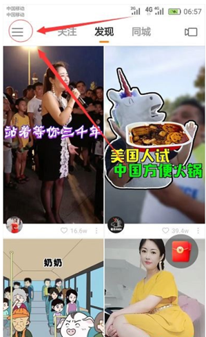 - 到应用市场下载快手极速版app,打开app,用手机号或者微信第三方登录app,让后点击左上角三条扛的图标;