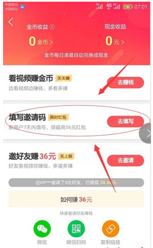 - 在输入框里输入邀请码,点击【提交领现金】按钮。
